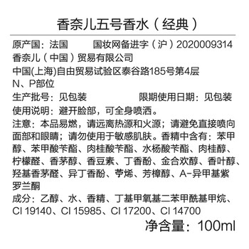 香奈儿(Chanel)五号香水(经典)100ml礼盒装N5女士香水生日礼物送女朋友送老婆