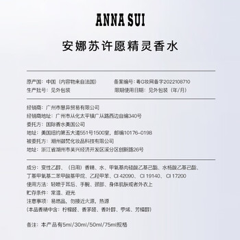 安娜苏(Anna sui)【所愿皆成】许愿精灵淡香水女士75ml礼盒送女生生日礼物