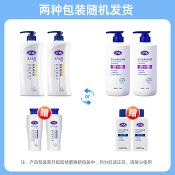 好迪(houdy)洗发水营养滋润型750ml*2+水润丝滑型60ml*2(2种包装随机发货)
