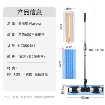 美丽雅夹布式平板拖把60cm伸缩杆141cm2拖布保洁家政酒店超大尘推一拖净