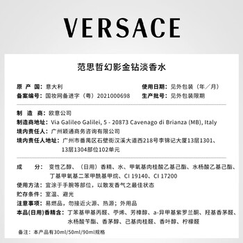 范思哲(VERSACE)幻影金钻女士香水50ml 持久留香送老婆生日礼物女士黄钻淡香