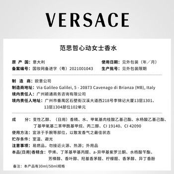 范思哲(VERSACE)心动女士香水50ml 持久留香送老婆生日礼物女士心动地中海淡香