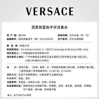 产品(注册/备案)名称 范思哲蓝色牛仔淡香水