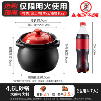 4.6L天然陶瓷砂锅煲汤养生煲 JLF46CP