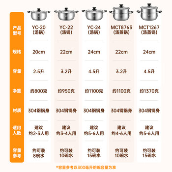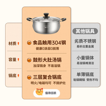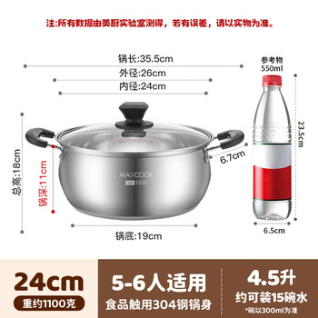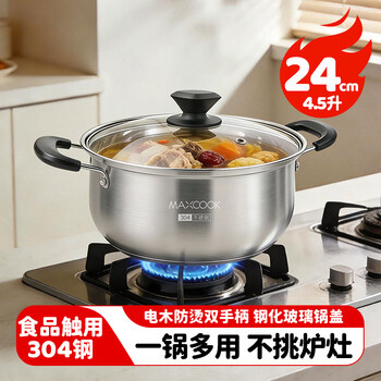 美厨(MAXCOOK)汤锅 304不锈钢汤锅汤煲24CM 加厚复合底 燃气炉电磁炉通用YC-24