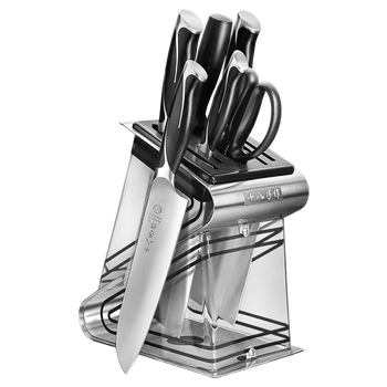 砍骨刀X1 切片刀X1 多用刀X1 水果刀X1 厨房剪X1 磨刀棒X1 刀座X1