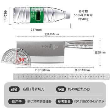 十八子作专业中式厨刀 复合钢菜刀厨师刀切片刀 名厨2号小号斩切刀TP01-2