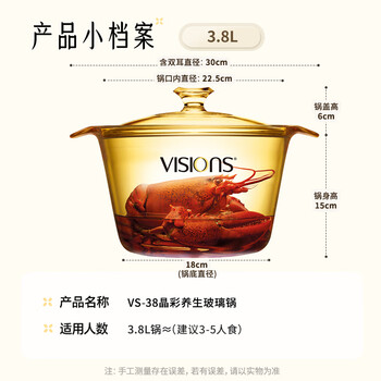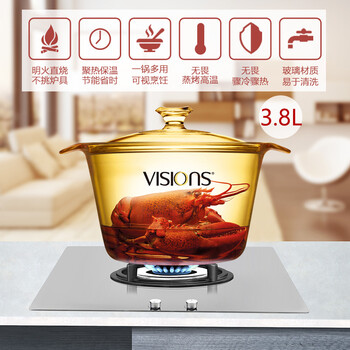 康宁(VISIONS) VISIONS 晶彩透明Flair系列3.8L养生锅厨房好物VS-38-FL/CN