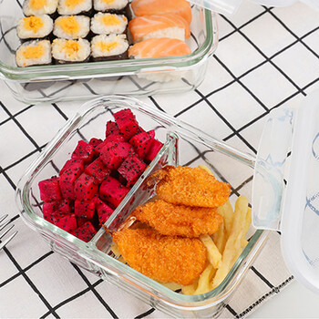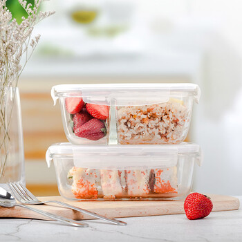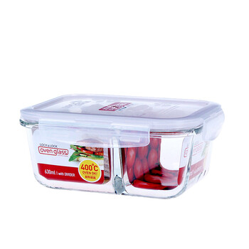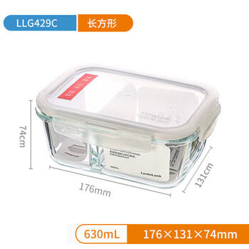 乐扣乐扣耐热玻璃保鲜盒微波炉饭盒密封便当盒餐盒冰箱收纳盒630ml二分隔