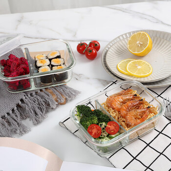 乐扣乐扣 耐热玻璃保鲜盒微波炉饭盒密封便当盒餐盒冰箱收纳盒600ml二分隔