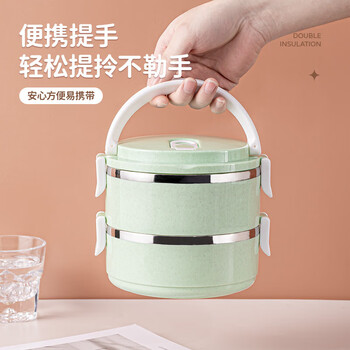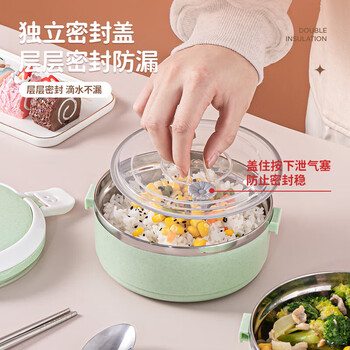贝瑟斯保温饭盒双层304不锈钢便当盒学生密封打饭桶饭缸 手提便式携餐盒