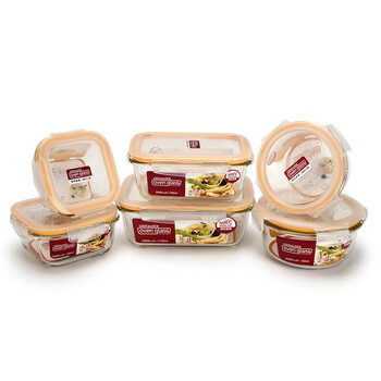 乐扣乐扣(LOCK&LOCK)耐热玻璃保鲜盒微波炉饭盒上班族便当盒学生水果饭菜餐盒6件套