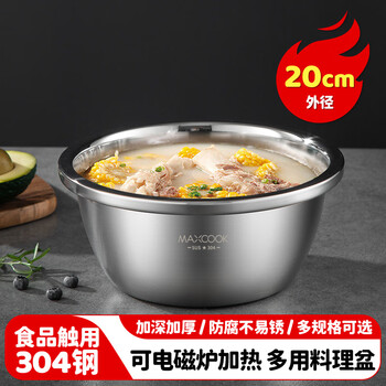 美厨(maxcook)304不锈钢盆调料盆 加厚味斗20CM 洗菜盆沙拉盆和面盆MCWA480-20