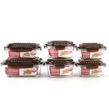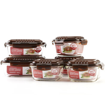 乐扣乐扣(LOCK&LOCK)耐热玻璃保鲜盒微波炉饭盒上班族学生便当盒带气孔餐盒六件套咖色