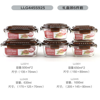 500ml保鲜盒*2、650ml保鲜盒*2、630ml保鲜盒*1、1000ml保鲜盒*1