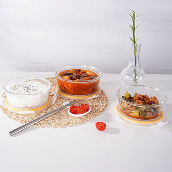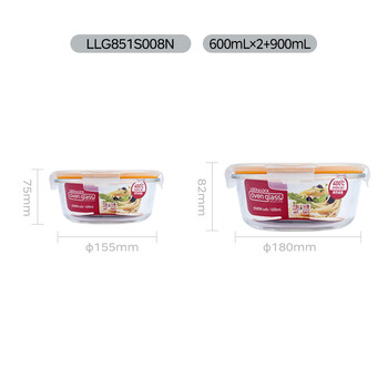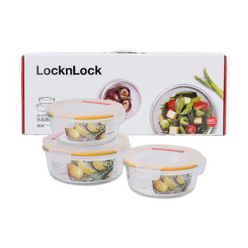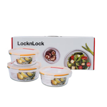 乐扣乐扣(LOCK&LOCK)耐热玻璃保鲜盒微波炉饭盒上班族学生便当盒水果饭菜保鲜碗三件套