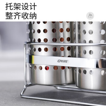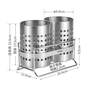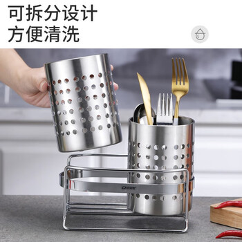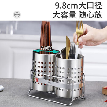 欧润哲筷子架家用不锈钢筷子筒筷笼加厚沥水置物架餐具收纳架 双筒连架