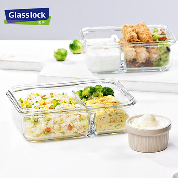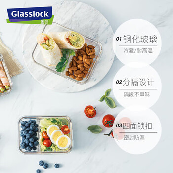 Glasslock进口钢化玻璃保鲜盒上班带饭微波炉加热分隔食品级饭盒670ml