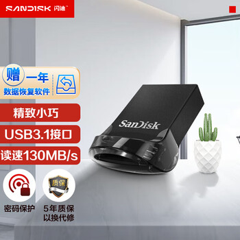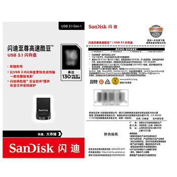 闪迪(SanDisk)32GB USB3.1 U盘 CZ430酷豆 黑色 读速130MB/s 车载U盘 文件加密 小巧便携优盘
