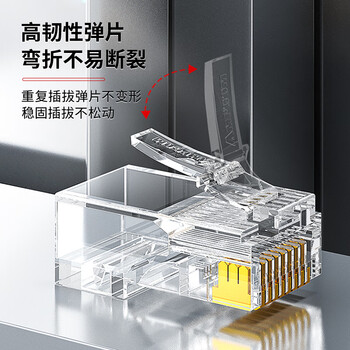 安普康AMPCOM超五类网线水晶头 50U镀金CAT5E类千兆网络接头100个RJ45工程级8P8C电脑网口连接器AMCAT5E50100*1