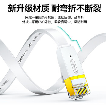 山泽(SAMZHE)6030PBS 六类扁平网线 无氧铜千兆镀金金属头高速电脑网线 cat6类超薄白色 3米 *1 合格证*1