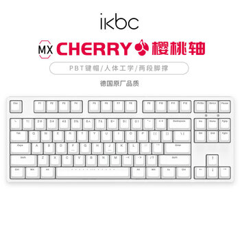 ikbcC87机械键盘有线键盘87键 电竞游戏键盘办公打字手感好电脑键盘樱桃键盘 白色青轴有线