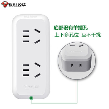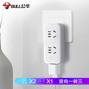 公牛(BULL)插座扩展器一转三/一转多插座/转换插头/转换器/插排 适用卧室、厨房 3位无开关竖向 GN-9312