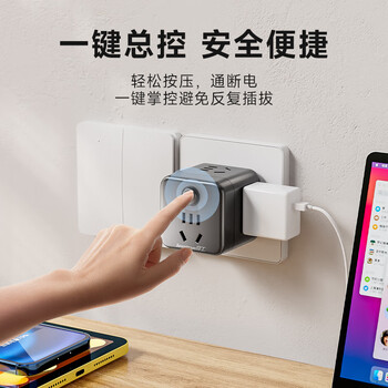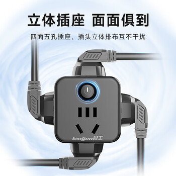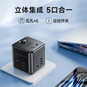 良工(lengon)无线魔方插座/插头转换器/转换插头插座/一转多插座扩展/多功能插座/插排/插板/一转五 Q605黑