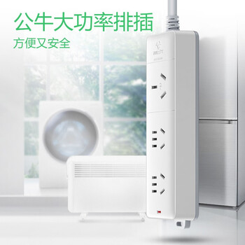 公牛(BULL)大功率16A插座16a排插/插排/插线板接线板 适用空调热水器电暖气 3位无开关全长1.8米送10A头405D