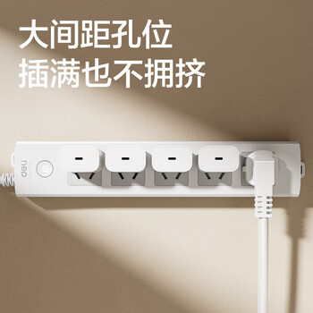 得力(deli)3C认证国标安全插座 插排/插线板/接线板/排插/拖线板 总控开关 儿童保护门 5组合孔3米 18204
