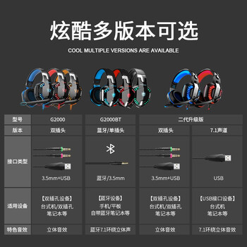 因卓(KOTION EACH)G2000Ⅱ 有线电竞头戴式耳机 网吧fps吃鸡游戏耳机 台式电脑笔记本通用耳机 降噪耳麦 黑红