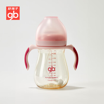 好孩子(gb)PPSU婴儿奶瓶宽口径奶瓶带手柄吸管小饿魔系列300ml粉色 6个月+