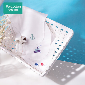 全棉时代婴儿隔汗巾纱布吸汗儿童开学幼儿园宝宝纯棉垫背船锚轮船帆船3条