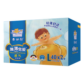 泰迪熊(Teddy Bear)臻薄透气彩箱装纸尿裤 L40片×2包=80片(1箱)