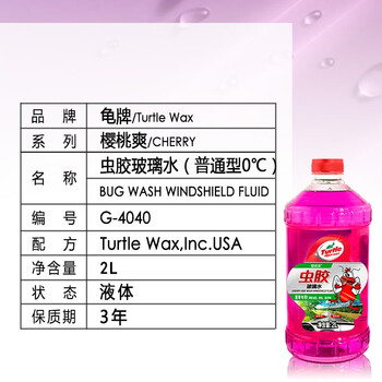 龟牌(Turtle Wax)樱桃爽去虫胶玻璃水 汽车去油膜鸟粪去污专用夏季雨刮水2L*6瓶