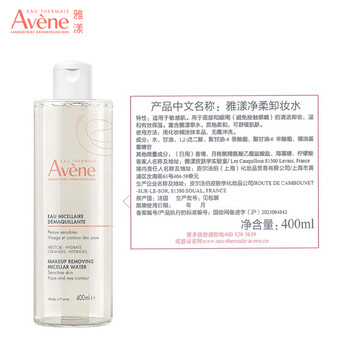 雅漾(Avene)净柔卸妆水400ML深层清洁温和不紧绷清爽油敏肌面部卸妆舒缓