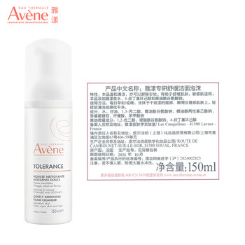 雅漾(Avene)专研舒缓洁面摩丝150ML深层清洁温和洗面奶泡沫慕斯敏肌礼物女士