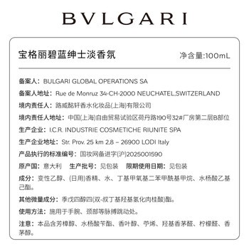 宝格丽碧蓝男士淡香氛100ml*1;外包装*1