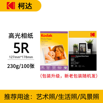 KODAK柯达 5R/7英寸 230g高光面照片纸/喷墨打印相片纸/相纸 100张装 5740-320