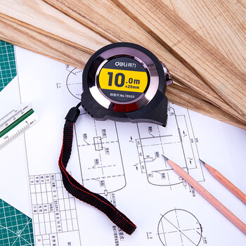 得力(deli)10m全包胶自锁钢卷尺 精准测量便携尺子 79553 灰色