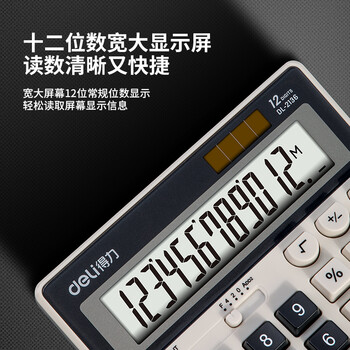 得力(deli)双电源电脑按键计算器 12位大屏横式桌面计算机 金融财务 办公用品 白色2136 新老混发