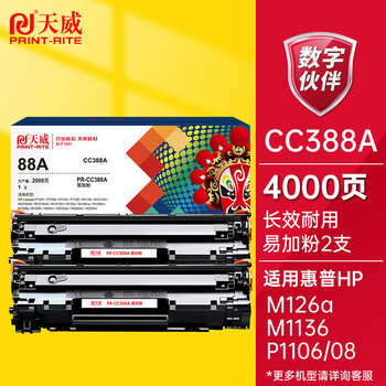 天威CC388A硒鼓 M126a硒鼓易加粉2支装 适用惠普HP P1108 P1007 P1106 M1136 M1216nfh M202n M126打印机墨盒