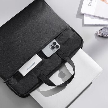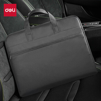 得力(deli)【超级爆款】公文包加厚立体办公手提袋会议包事务包文件包商务拉链袋电脑包男大容量黑色BG666