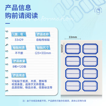 得力(deli)960枚不干胶标签便利贴贴纸自粘性标贴23mm×33mm8枚/张(共120张)33350