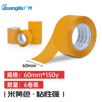 广博防风(GuangBo)6卷装60mm*150y*50μm 137.1米/卷米黄色封箱宽胶带胶布办公文具FX-77