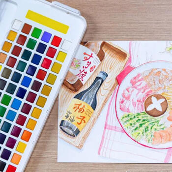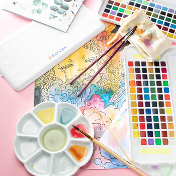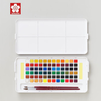 樱花(SAKURA)固体水彩颜料72色套装春节礼盒新年礼物便携透明水彩学生写生素描绘画用品生日伴手礼美术写生