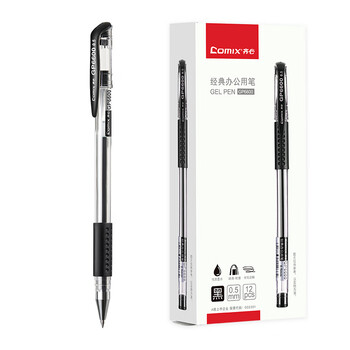 齐心(Comix) 经典子弹头办公中性笔/水笔/签字笔 0.5mm书写工具12支/盒 黑色 GP6600