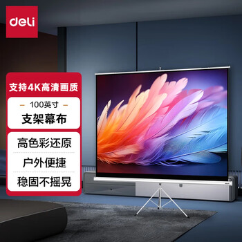 得力(deli)100英寸4:3投影机投影仪支架幕布半自动收卷 适配坚果极米当贝 简易家用办公投影仪 投影幕布50491