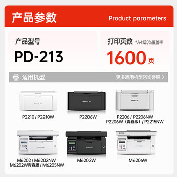 奔图(PANTUM)PD-213硒鼓原装适用P2206W M6202W青春版M6202NW 6206WM6603NW墨盒P2206NW 2210W 2215/6205NW打印机213e硒鼓