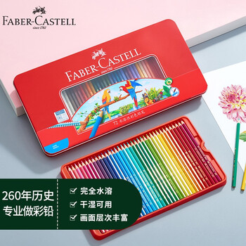 辉柏嘉(Faber-castell)彩铅水溶性彩色铅笔绘画套装画画工具儿童礼物 72色红铁盒装(配笔刨+橡皮)115973美术写生
